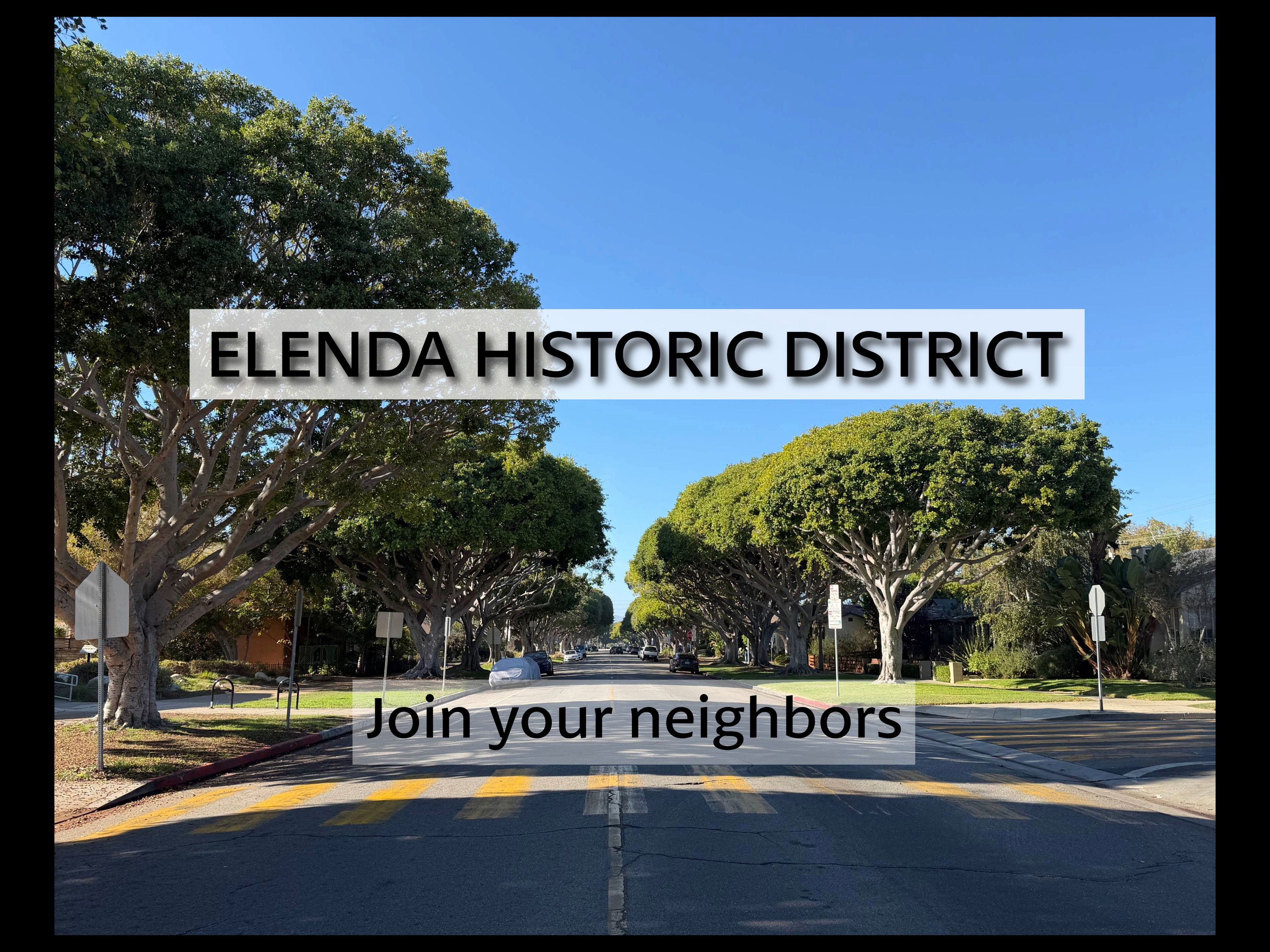 Stretching from Culver Boulevard to Farragut Drive, from Overland Avenue to Sepulveda Boulevard, the Elenda Historic District unites the tri-school campus, the Robert Frost Auditorium, and a 1940s Ficus microcarpa heritage canopy containing 78 mature trees. Adjacent corridors extend this pattern. Garfield Avenue’s 46 Jacaranda mimosifolia, Farragut and Franklin’s combined 58 Ulmus parvifolia, and Braddock Drive’s 76 elms form a secondary belt of shade that links Elenda to the city’s broader tree network. Designed so students and neighbors could walk beneath continuous shade between homes, schools, and civic spaces, it remains a living model of sustainable, human-scaled planning in Culver City.